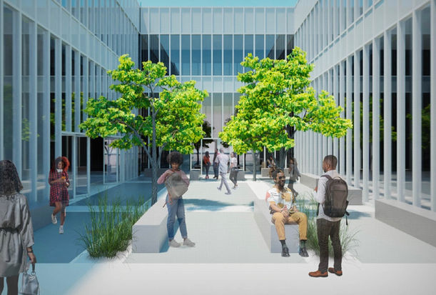 The project consists of a new two-story structural steel and concrete/precast building with cold-formed metal framing clad in insulated metal panels and translucent glass exterior walls. Highlights include a clerestory interior courtyard, TPO roof with green roof spaces, and a rooftop steel trellis lounge with an adjacent event area. Inside, the facility will feature five two-story dance studios including a grand studio along with a costume shop, physical therapy space, kitchen/pantry, locker rooms, dressing rooms, off ices, and conference rooms. New utility infrastructure for water, sewer/storm, gas, and electrical service will be installed to support operations. The project also includes an underground storm detention system to manage site drainage.