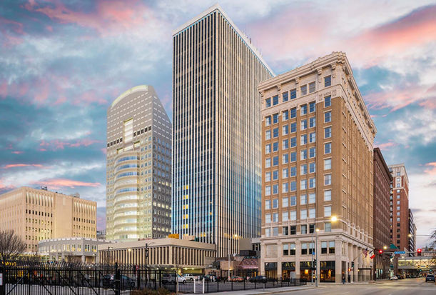 The Surety Hotel underwent significant rehabilitation to the historic 12-story building into a boutique hotel. The project involved restoring historic features such as first-floor plaster ceilings, elevator lobbies, the building facade, and original wood flooring. Interior work included demolishing upper floors to create 137 guest rooms. Level 2 features business offices, conference rooms, and a fitness center, while the first floor includes the lobby, ballroom, and a restaurant with a wood-fired brick oven. The basement accommodates back-of-house facilities, including mechanicals, storage, and employee amenities.